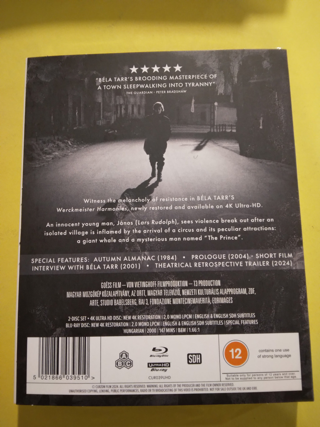 Werckmeister harmóniák (2000) Metsző hidegbe dermedt alföldi kisváros. Bár lakják - de lakói élettelen öröm és szenvedély nélküliek, szívük helyén méreg, harag, rosszindulat és keserűség. Éppen olyanok, mint a fagy, amely körülveszi őket. Az élet valahol másfelé történik. Egy nap cirkuszi sátor emelkedik a város főterén, benne a nagy mutatvány: egy kitömött bálna. Sereglik a nép látni a páratlan csodát. A felbolydult állapot a titokzatosságba burkolódzó cirkuszi jövevénynek, a Hercegnek kedvez, aki afféle "negatív" messiásként a település minden lakójában lerombolja a maradék reményt és hitet. Egyéb címek: Werkmeister harmóniák, Werkmeister Harmonies Hossz: 145 perc |