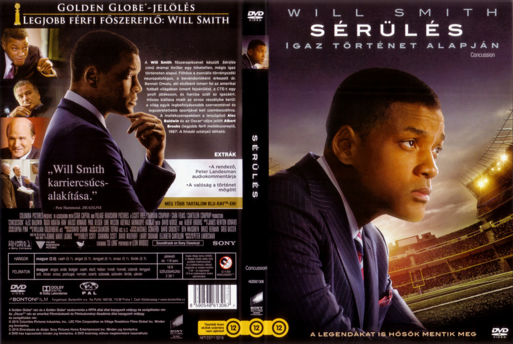 | Rövid leírás a termékről | Az alakításáért Arany Glóbusz-díjra jelölt Will Smith főszereplésével készült Sérülés című thriller hihetetlen, mégis igaz történetének főhőse egy rendkívüli orvos, aki rájön, milyen következményekkel járhatnak az amerikai futball fejsérülései. A profi sport befolyásos alakjai megpróbálják elhallgattatni, de ő mégis harcba száll az igazáért – még ha ezzel az Egyesült Államok egyik legkedveltebb sportjával kel szembeszállnia. A végig izgalmas és elgondolkodtató filmben olyan színészeket láthatunk még, mint Alec Baldwin és az Oscar®-díjra jelölt Albert Brooks. EXTRÁK Audiókommentár - Peter Landesman rendező audiokommentárja